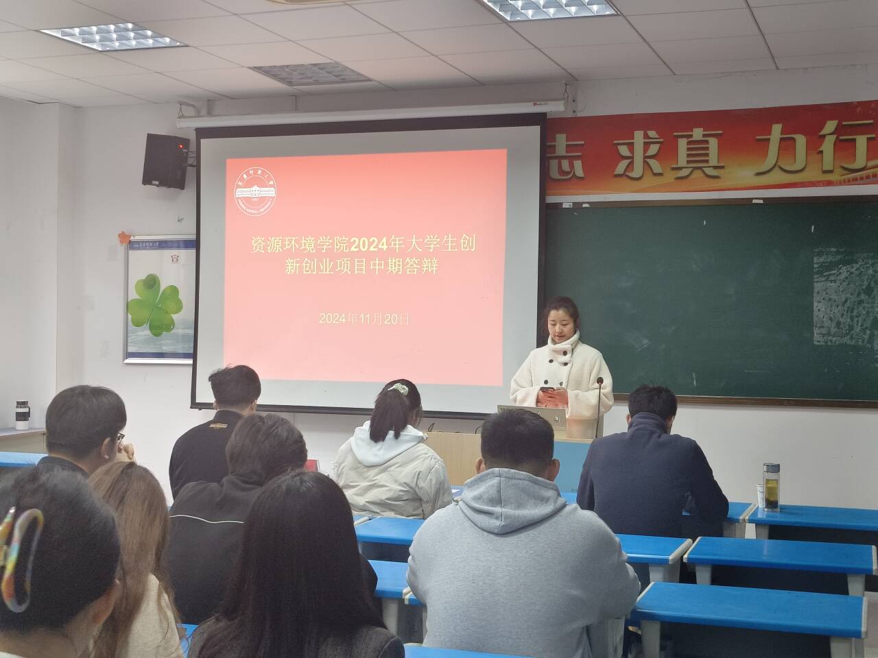 在F204教室开展2024年大学生创新创业训练计划项目中期进展汇报会。教师朱梦钰、李青山、吴伟参加。