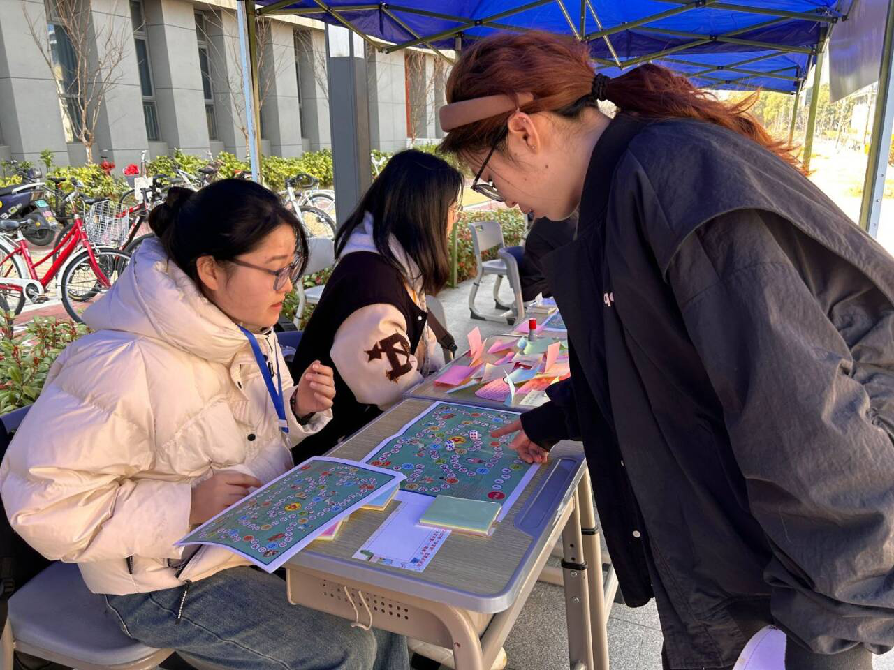 “雷锋”大富翁游戏更是乐趣横生,通过掷骰子决定所走步数,比赛谁先到达终点。活动现场,同学们积极参与。当玩家走到惩罚区时,需要回答有关雷锋的问题。在一道关于“雷锋曾说过哪些关于无私奉献的名言”的题目前,几位同学围在一起,他们回忆着平时了解到的雷锋故事。“我记得雷锋说过‘人的生命是有限的,可是,为人民服务是无限的,我要把有限的生命,投入到无限的为人民服务之中去 。’”一位同学兴奋地说道。另一位同学也急忙补充:“我还想到‘把别人的困难当成自己的困难,把同志的愉快看成自己的幸福。’”在大家的集思广益下,同学们顺利回答出问题。与此同时,现场的志愿者们也积极参与到互动中。他们不仅耐心地为同学们讲解游戏规则和难题要点,还在一旁为大家加油鼓劲。当有同学在游戏中稍显迷茫时,志愿者们会及时给予引导,让游戏能够顺利进行。