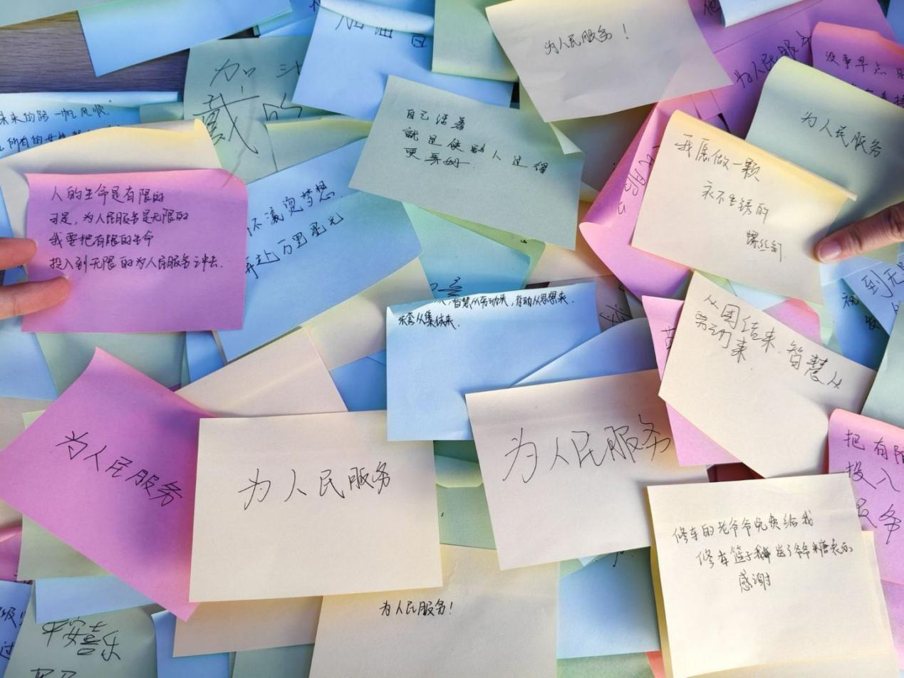 活动当天一早,红太阳志愿者服务团的部员便着手场地准备工作,从展棚搭建到道具摆放,从标语悬挂到区域划分,每个环节都凝聚着团队的用心。活动现场吸引众多师生驻足,他们纷纷询问活动背景,了解活动流程,现场参与氛围浓厚。本次活动包括两个环节,参与活动的同学可以选择写便签或者进行“雷锋”大富翁游戏。在便签书写环节,学生们可以写下他们对雷锋精神的感想,或是他们曾遇到的好人好事,亦或是他们了解到的雷锋名言。学生们纷纷写下自己心中的雷锋形象。有人说他是“人们的榜样”,有人说他是“人民的好战士”……一言一语无不体现同学们对雷锋同志的敬佩。也有同学写下雷锋的名言警句“我愿永远做一个螺丝钉”“人的生命是有限的,可是,为人民服务是无限的,我要把有限的生命,投入到无限的为人民服务之中去”……每句话都催人奋进,使人鼓舞。