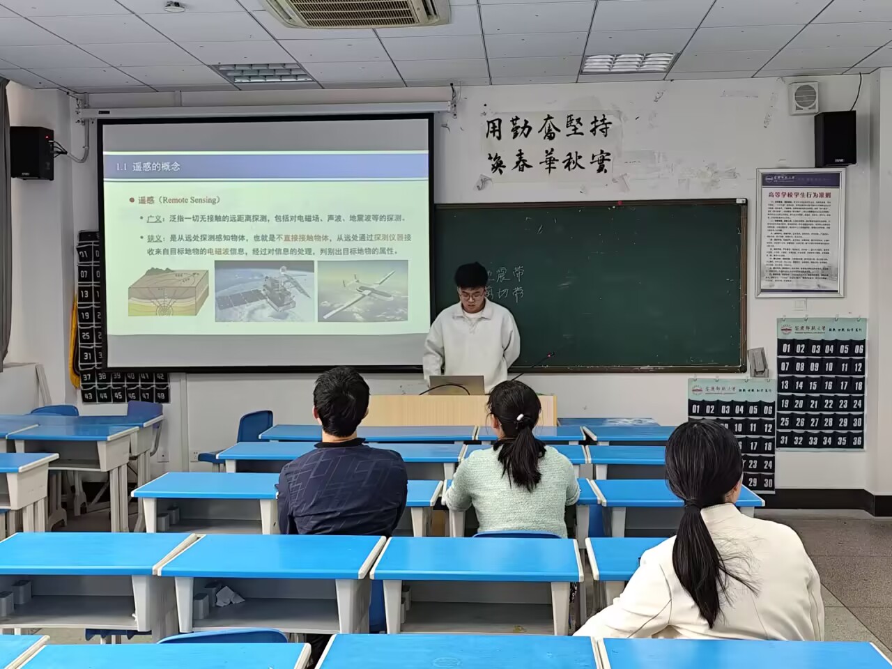 教师教学技能大赛初赛。校教学督导员丁元春、地理教研室主任顾洪亮代表出席并担任专家评委,地理科学教研室多名青年教师参加角逐,部分青年教师到场观摩学习。比赛由地理教研室主任顾洪亮主持。