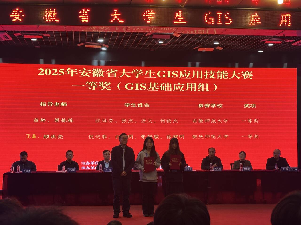 地理科学专业倪进菲团队(指导老师:王鑫、顾洪亮)荣获GIS基础应用组一等奖;张勤勤团队作品《不同气候环境情境下的亚热带典型树种甜槠适宜性评价分析》(指导老师:顾洪亮、林宗毛)荣获学术论文展示组二等奖、沈善缘团队(指导老师:杨雪、顾洪亮)荣获GIS基础应用组二等奖;曹苏惠团队作品《多种高分辨率DEM产品质量评估及误差分析——以安徽省为例》(指导老师:杜懿、付含聪)、徐玉晴团队作品《基于国产高分影像的城中村精细监测与登革热疫情的响应研究——以广州主城区为例》(指导老师:吴伟、顾洪亮)荣获学术论文展示组三等奖、王逸菲团队(指导老师:吴伟)荣获GIS基础应用组三等奖。