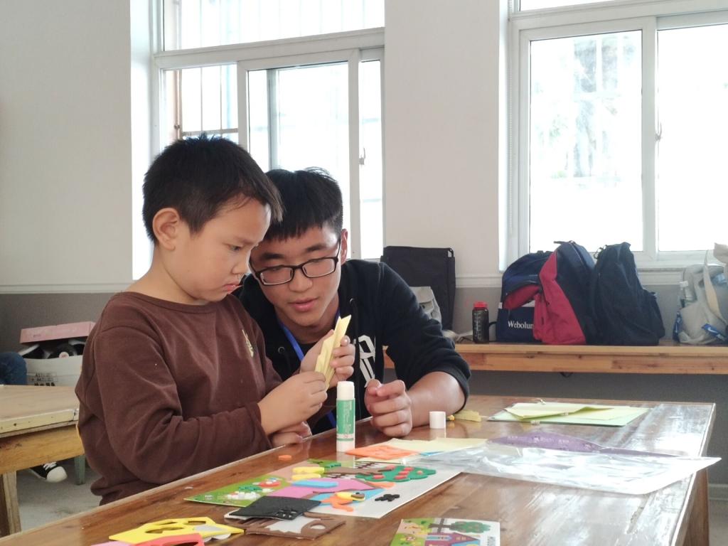 “先对折,再根据中间那条线一面向前折,一面向后折......”折纸环节中,孩子们到了最后反而当起了老师,开始带着志愿者折一些新奇的小事物。地理科学专业2018级(3)胡玉婷说:“孩子们真的心灵手巧,什么东西都能快速学会,还能想出一些我们都想不到的东西”