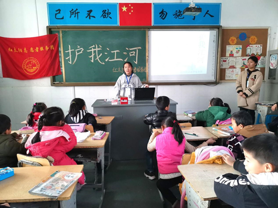 红太阳志愿者服务团的志愿者们来到十里中心学校开展了“护我江河”主题活动。