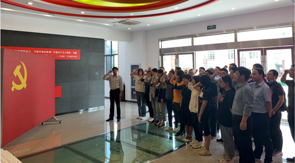 在东至县革命烈士陵园,全体党员共同瞻仰了烈士纪念碑和遗迹。一寸山河一寸血,革命先烈艰苦奋斗,不怕牺牲,不屈不挠的斗争精神是中国共产党人的制胜法宝。广大党员纷纷表示,要从党的历史中汲取力量和滋养,把红色传统发扬好,不忘英烈们的奉献与牺牲,学习革命先烈可歌可泣的伟大品格和信念。要以过硬的素质、务实的作风、昂扬的斗志、弘扬革命精神,建功立业新时代,充分发挥先锋模范作用,以实际行动向建党100周年献礼。