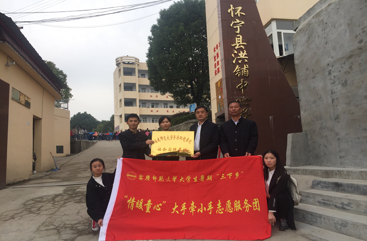 社会实践基地揭牌仪式于怀宁县洪铺中心学校拉开帷幕。洪铺中心学校校长朱龙升、副校长关键等领导,院团总支负责人程亚运和部分学生参加了此次活动。
