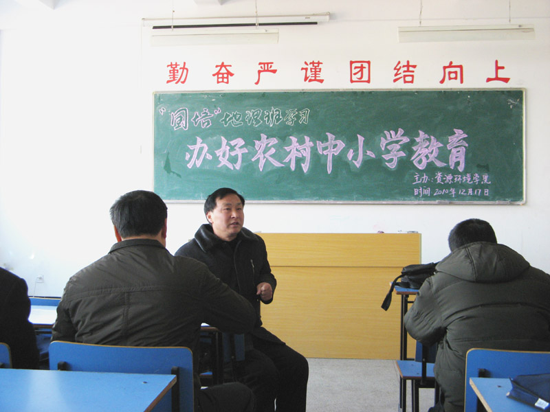 党总支书记李经田主持了学习座谈会。 在学习座谈会上,“国培”班学员发言积极踊跃,对温总理的 “教育是国家发展的基石。国运兴衰系于教育,只有办一流教育,才会出一流人才,才能建一流国家。” “提高农村教育水平,核心是农村中小学,关键是中小学教师。”等重要论述体会最深。大家表示,通过学习温总理对农村中小学教育的关注和鼓励让大家倍受鼓舞,同时也深感身上的责任和压力。作为农村教师的一员应该认识到自己所从事的不是一个简简单单的工作,而是一项非常重大,非常高尚的工作,自己一定要努力把这项工作干好。“在这个平凡的岗位上成就一番不平凡的事业”。自己要不断努力,肩负起使命和责任。热爱所从事的教育事业,为农村教育贡献自己的力量。 李经田同志对各位学员的发言逐个进行了点评,并作了总结发言。他指出,温家宝总理关于“办好农村中小学教育”重要讲话,站在国家发展战略的高度指出了办好农村中小学教育的重要性和在办好农村中小学教育过程中教师的关键性地位,大家要充分领会讲话的精神实质,全体学员要感受到党中央国务院对农村教育的重视和期望。我们正在举办的“国培计划”培训班是国家在农村中小学教师培养方面的又一重大举措,我们要把温家宝总理的讲话精神贯彻到“国培计划”项目的教学中去,大家在今后的实际工作中要把重点放在温家宝总理提出的“要热爱农村教育,要立志干一番事业,要有吃苦耐劳精神”的三点希望上。充分认识到教育特别是农村教育的重要性,认识到自己肩负的责任和义务,为农村教育尽自己绵薄之力,不辱教师使命。 |