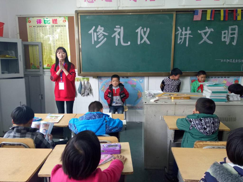 红太阳志愿者服务团奔赴安庆市大观区十里中心小学开展“修礼仪,讲文明”主题活动。