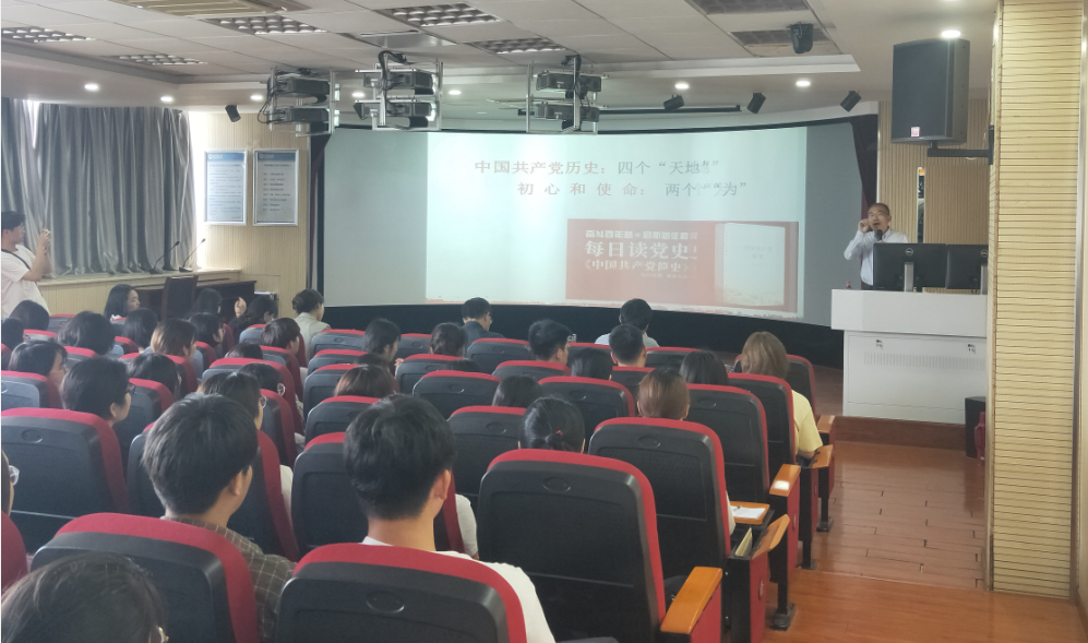 党委在F411报告厅开展党史学习教育,邀请校马克思主义学院党委书记金文斌教授为学院全体学生党员做了一场“从中国共产党历史谈初心和使命”专题宣讲。院党委书记夏宏宇、党委副书记刘燕杰、各学生党支部书记及全体学生党员共同聆听了本次宣讲。