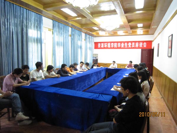 在红楼会议室召开毕业生党员安全文明离校教育座谈会。学院党总支书记李经田、副书记王开友、团总支书记刘燕杰、毕业班辅导员、学生党支部书记吴唤玲和2010届毕业生党员40多人参加了会议。座谈会由学院党总支书记李经田同志主持。