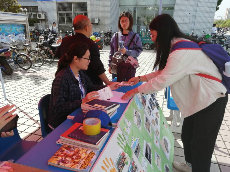 环境科学专业2018(3)班的章璐琳同学一下课就来到活动摊点,捐献了两本《淘气包马小跳》,她说:“这是我童年时最喜欢看的书,这种儿童文学小说很适合孩子们阅读,可以呼唤孩子们的天性,开发孩子们的想象力。”捐书之后,她还给孩子们送上了温暖的祝福:希望你们好好学习,希望你们相信世界充满爱。