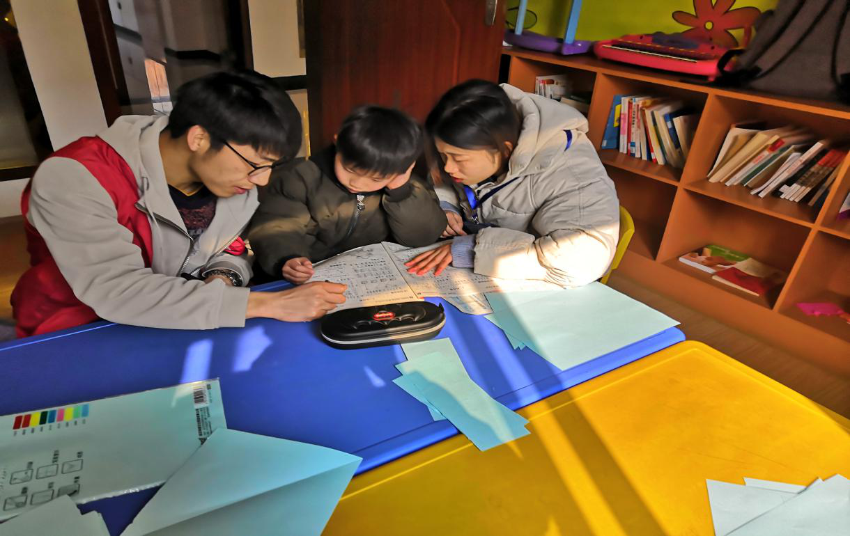 学生会实践部的部员们走进燎原社区,为小朋友们进行作业辅导。志愿者们对小朋友们的难题进行了细致的讲解和生动的演绎。