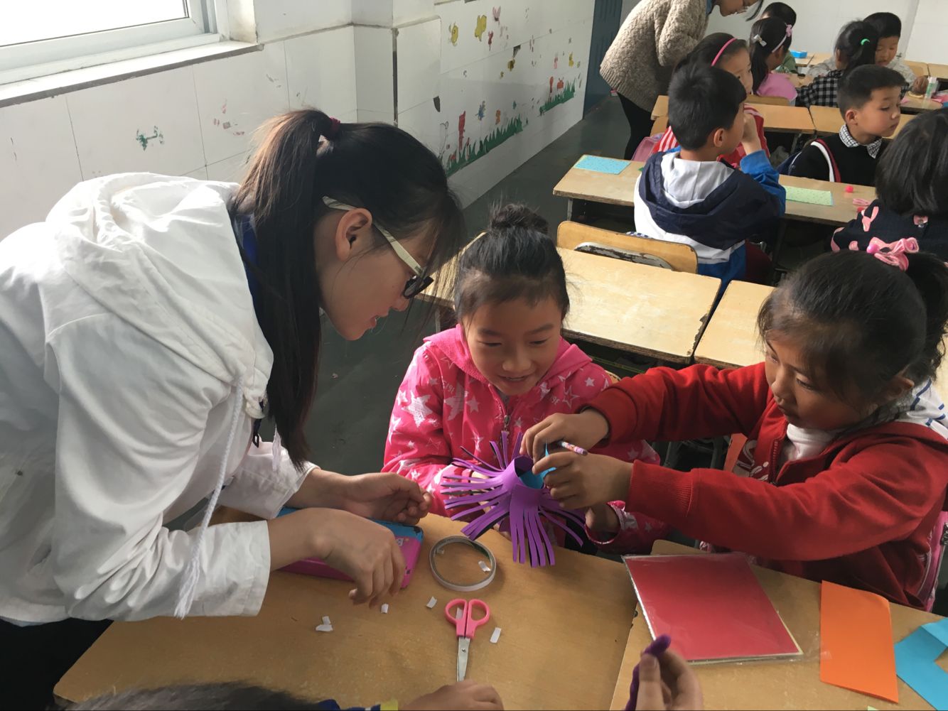 活动开始,志愿者与学生们分享了一些颇有灵感的生活小技巧,并带领他们观看了剪纸制作视频,发散学生思维。随后,志愿者对本次活动的安排进行了详细地说明,学生们表现出极大的兴趣。在志愿者的引导下,学生们分成小组并领取了橡皮泥、彩纸等小工具,开始了手工制作。在制作过程中,学生们充分发挥自己的想象力,用灵巧的小手制作出有自己独特想法的作品。活动最后,学生们纷纷上台展示自己的手工作品,本次活动也在愉悦、轻松的气氛中顺利结束。