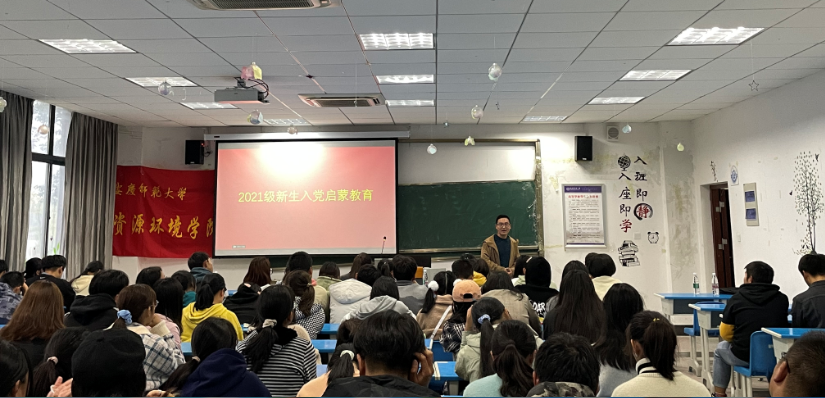 为深化2021级新生对中国共产党的认识,使同学们对入党条件、入党程序有进一步了解,积极向党组织靠拢,10月20日,学院以“坚定理想信念,永远跟党走”为主题,对2021级新生进行入党启蒙教育,课程由学院学生党支部书记訾纪辉主讲,200余名新生听取了宣讲。