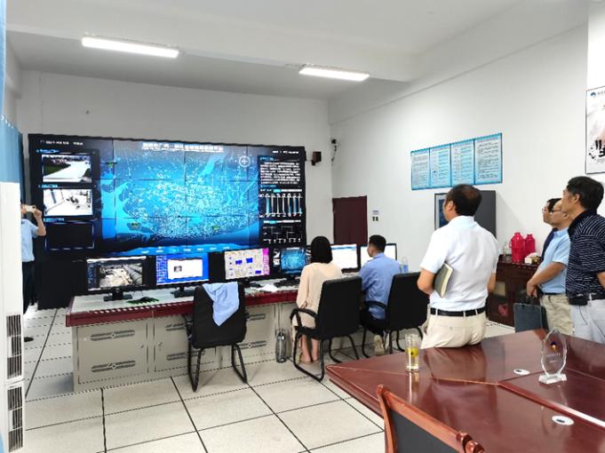 一行参观了安庆市厂网一体化运营指挥调度平台,详细听取了安庆市排水管网、泵站、污水厂一体化调度情况。