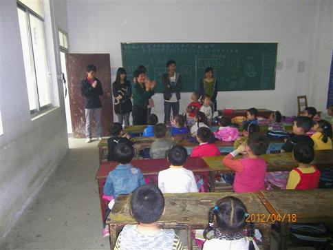 2011级旅游管理1、2班团支部组织开展了对安庆市大龙山镇永林小学的义务教育活动。