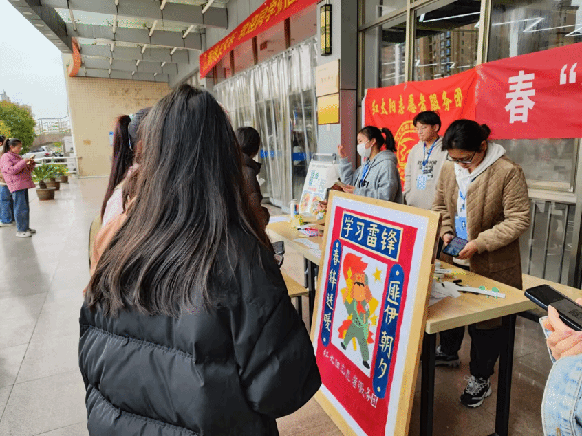 红太阳志愿者服务团3月25日在西苑食堂门口举办“春‘锋’送暖,匪伊朝夕”主题活动,以别出心裁的方式弘扬雷锋精神,帮助学生们摆脱焦虑,树立正确的价值观人生观。