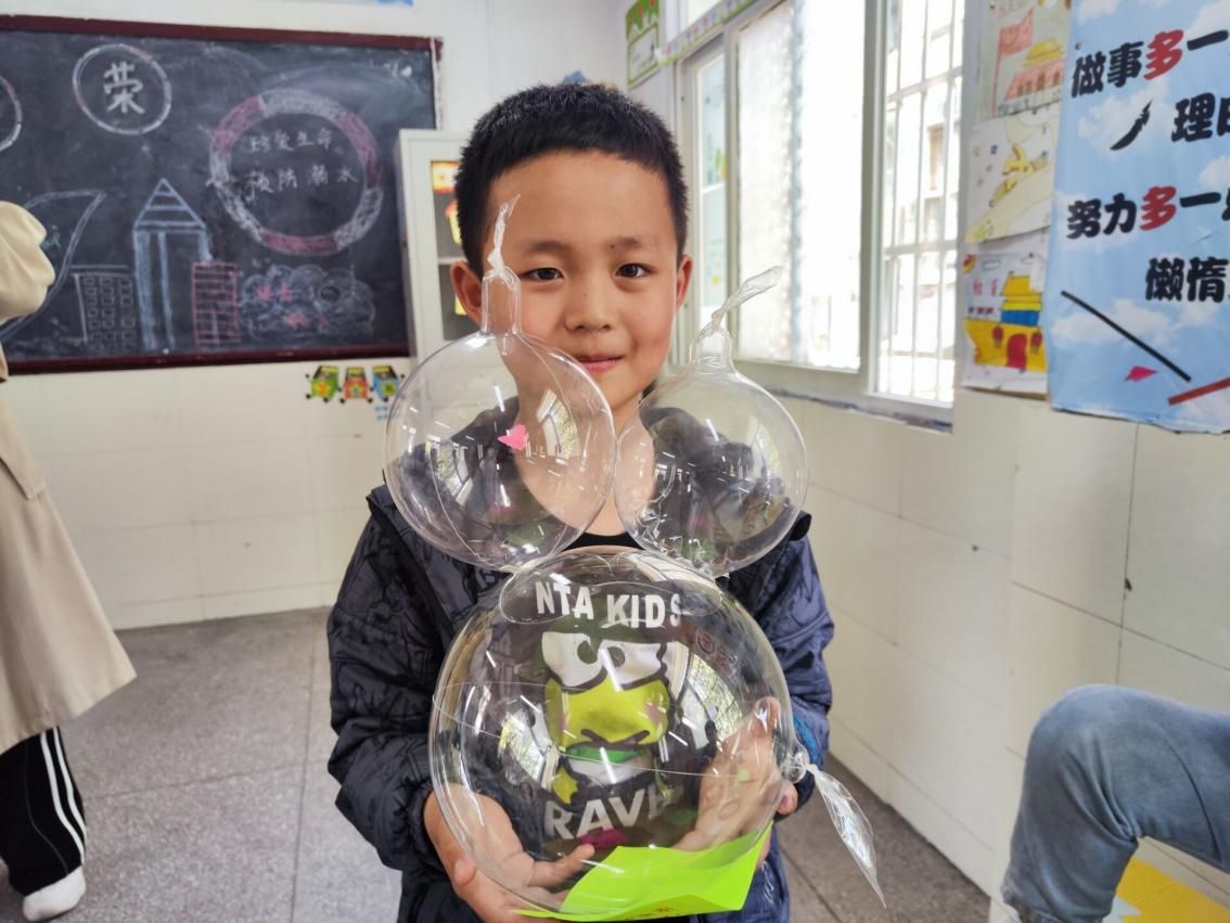 此外,志愿者们特别准备了手绘星球的活动,让学生们以行星图片为模板,以心中的遐想为指引,用一支画笔和一盘颜料在白色星球上绘出自己的色彩。小朋友们用独特的想象力,描绘出各自心中的星球,展示了他们不同的想象与思考,其中最引人注目的便是叶彬宇同学的作品,他的星球浓墨重彩,犹如梵高笔下的《星月夜》,令人回味无穷。