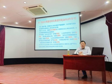 讲座在同学们热烈的掌声中拉开序幕,内容共分为三个部分。叶伟首先简述了我国生态环境保护的发展历程,从各个时期国家对生态环境保护政策的改变,展示了我国对环境保护的逐年重视。在此基础上,第二部分介绍了安庆市的生态环境保护情况。叶伟指出,与以往相比,安庆市的环境保护工程已有一定成果,但总体来看我市的环境优良度仍不达标,大气污染度不降反升,水体污染整治较难。据此,叶伟强调,“考核”是当前环境监测工作的“指挥棒”,如何治理环境、进行基层环境治理,仍主要依靠考核。