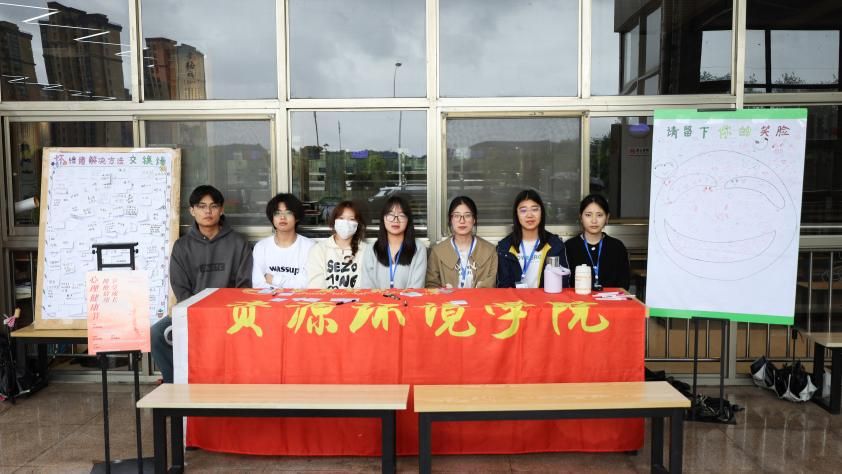 在西苑食堂门口开展“拥抱情绪,享受成长”心理健康节主题活动,800余名学生互换解忧“大法”,与笑脸相拥。