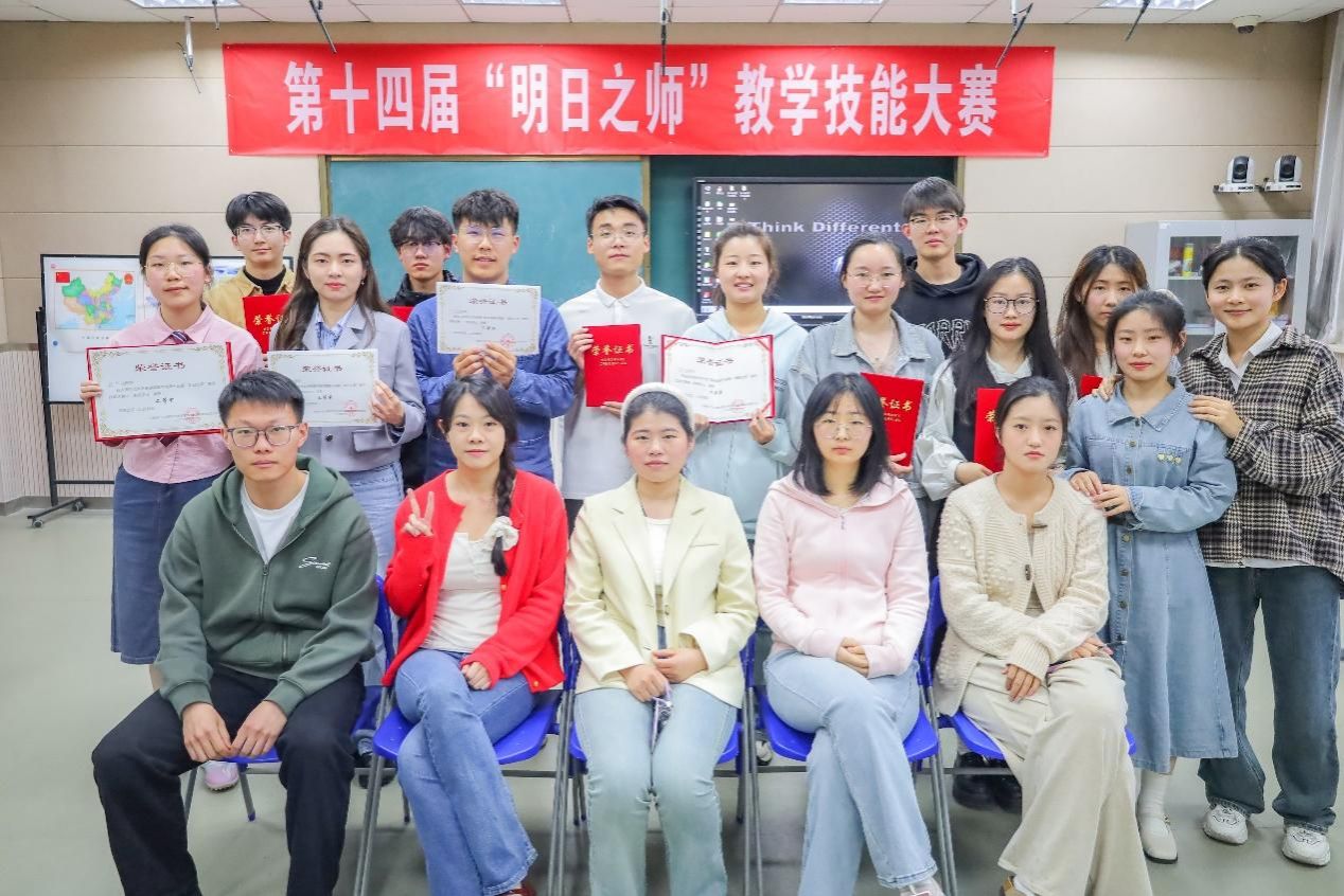 参赛选手们随机抽取高中地理教材中的任一章节,按照抽签顺序依次上台,在15分钟内以 “无生授课”的形式进行教学技能展示,并由评委点评打分。经过精彩比拼,最终产文泽、洪心语、张洋洋荣获一等奖,沈善缘、陈默涵等人荣获二等奖,王绮、刘世杰荣获三等奖。