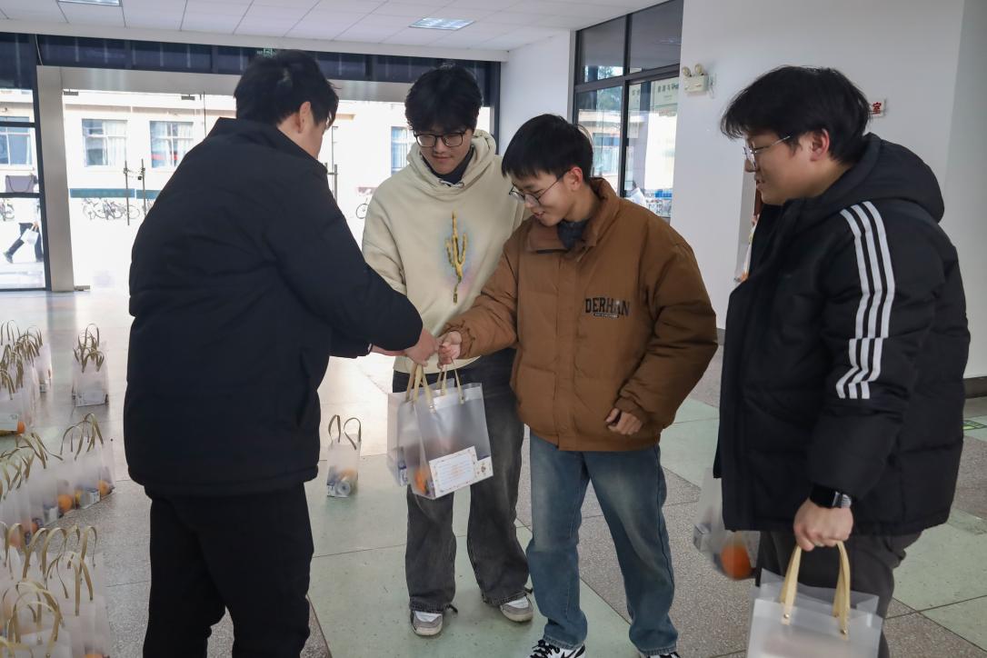 一张贺卡、一个橙子、一份心意……每一个分发给考研学子的礼包都被学生们塞的满满的。“每一个物品都是黄书记精心挑选的。”谈及礼包中不同物品的选择,地理科学专业2023(2)班的徐国瑞直言,每一项物品都有其特殊的含义,贺卡凝结着对考研学子的祝福;饮品“红牛”寓意鼓足干劲,迎接最后的冲刺;橙子则是运用谐音,希望学生们心想事“橙”,一战成硕。
