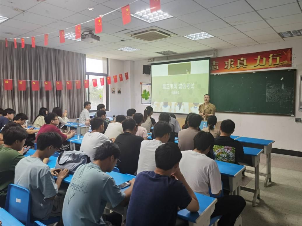 6月19日,2021级环境工程2班在F204召开国际禁毒日主题教育暨期末考试诚信教育主题班会,会议由辅导员汪翘楚主持,班级41名同学参会。