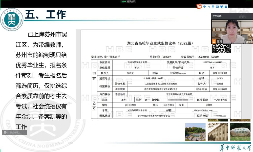 在F203召开了专题教育报告会,本次报告会由2019届地理科学专业优秀毕业生王涛主讲。由于疫情的原因,本次报告会采用线上形式进行,参加的同学主要为2019级地理科学专业学生。