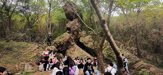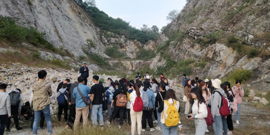 实习期间,在朝阳山采石场,学生们在老师的指导下学习使用地质锤,观察栖霞组底部碎屑岩及臭灰岩特征,同时学习使用地质罗盘测岩层走向、倾向和倾角的能力;在麒麟山采石场,学生们在老师的带领下,观察船山组和黄龙组的接触关系,并学习绘制信手剖面示意图;在王乔洞和紫薇洞,学生们了解洞内形态与产出层位,并考察喀斯特溶洞内各种岩溶现象。