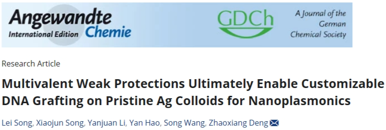 教师宋磊在国际TOP期刊《Angewandte Chemie International Edition》(中科院SCI一区TOP期刊)发表题为“Multivalent Weak Protections Ultimately Enable Customizable DNA Grafting on Pristine Ag Colloids for Nanoplasmonics”的研究成果。《Angewandte Chemie International Edition》是国际化学领域最具影响力的顶级学术期刊之一,在全球化学界享有极高的声誉,影响因子为16.1。据悉,这是快猫短视频