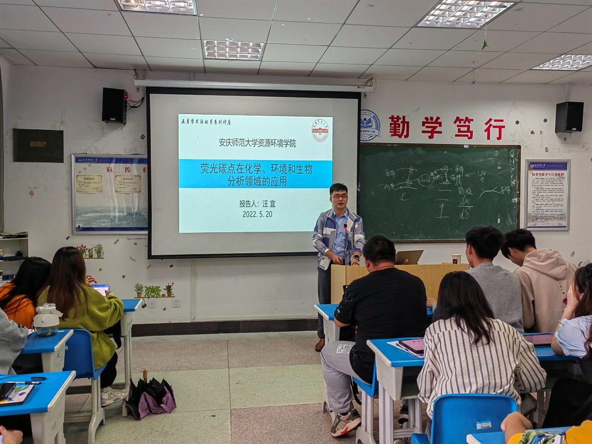 汪宜博士在F203教室作了题为“荧光碳点在化学、环境和生物分析领域的应用”的学术报告,环境工程专业学生和部分教师参与了本次报告会。