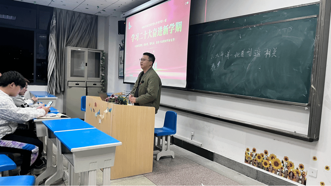 环境科学与工程类一班二班在f楼207由辅导员召开学习党的二十大主题班会。